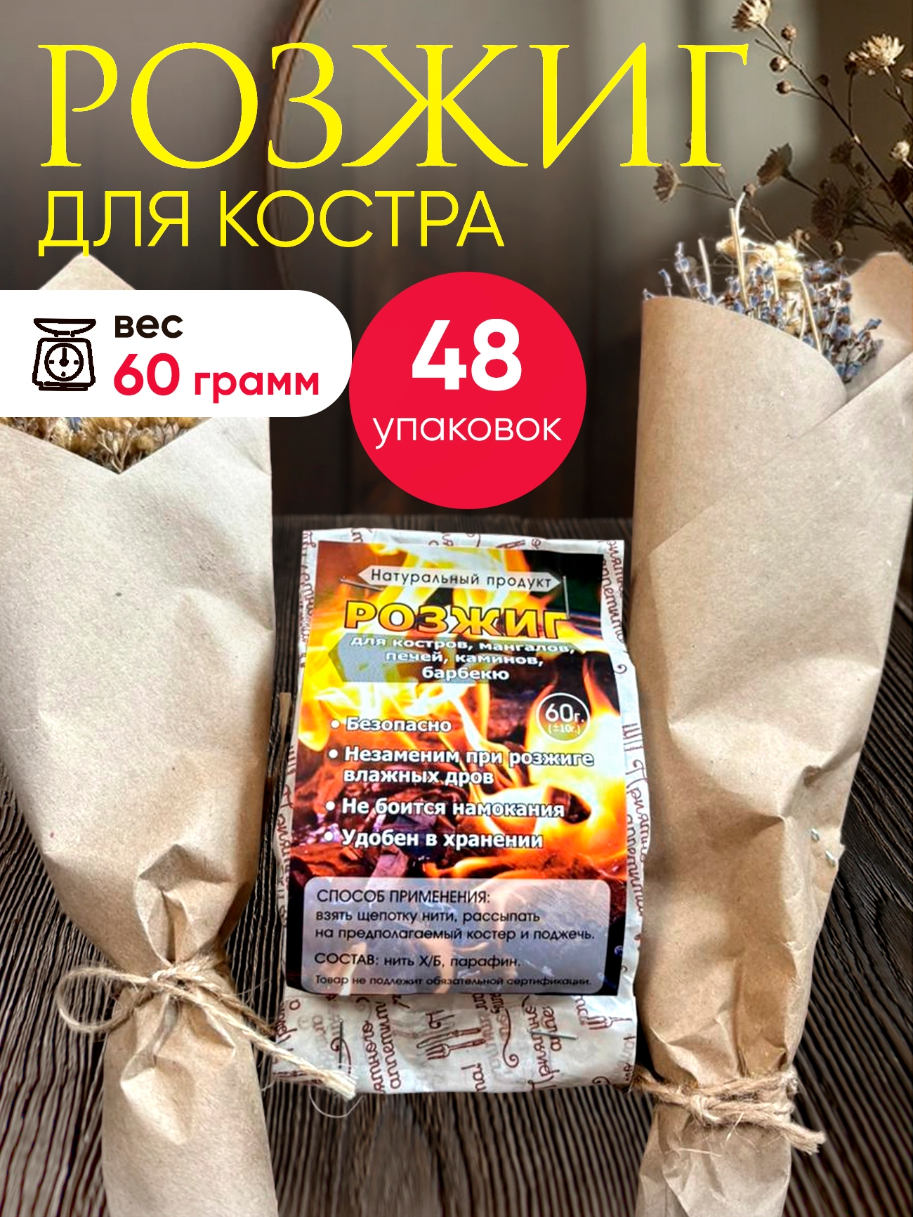 | Розжиг 60г | 32,00 руб. | 48 шт. | 1200 руб. |