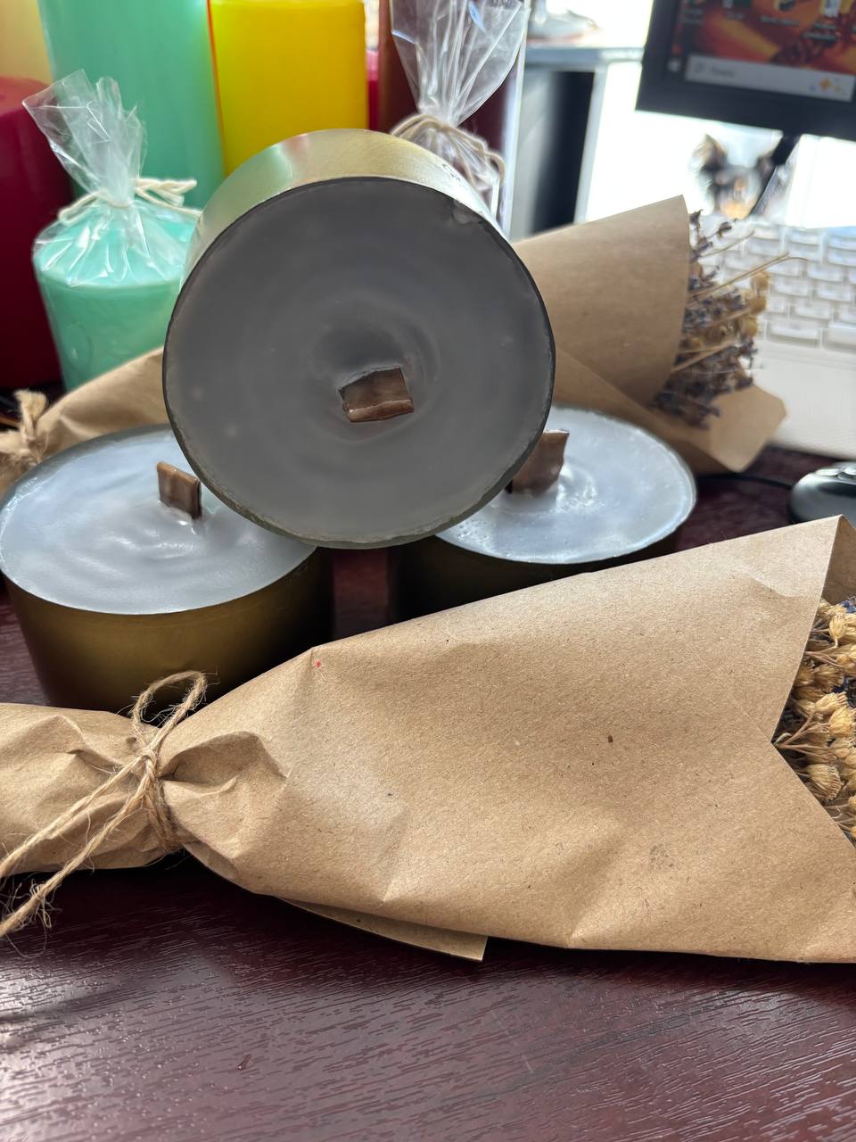 ** В наличии имеются свечи цветные следующих оттенков: желтый, черный, бирюзовый, красный, бордовый.
